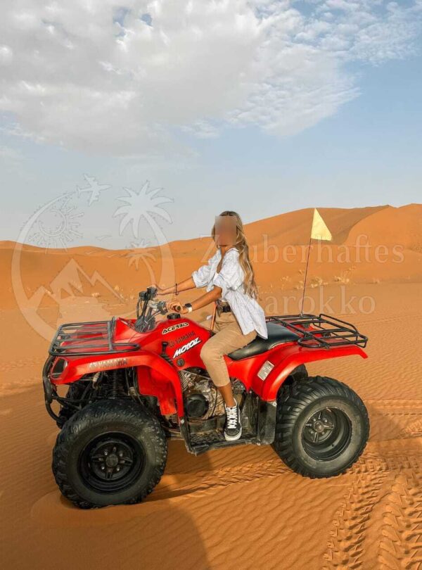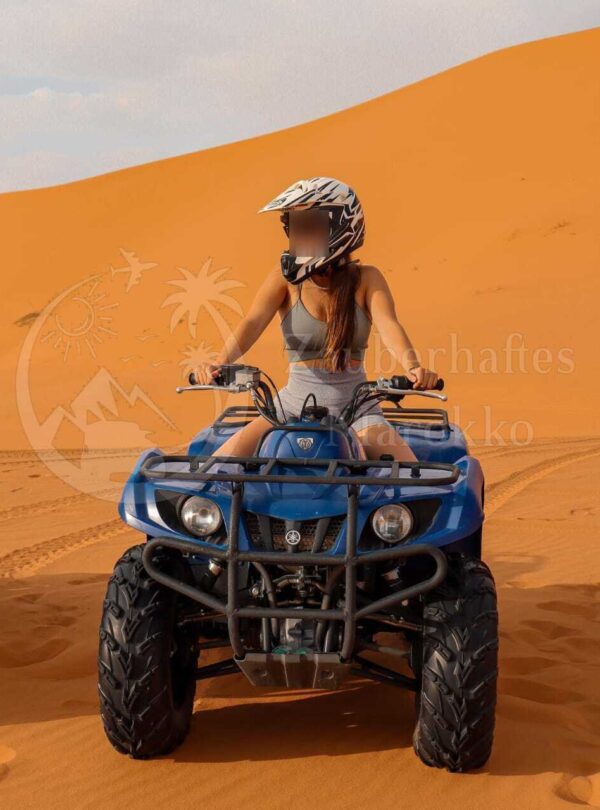 Erleben Sie ein aufregendes Erlebnis, während Sie mit Ihrem eigenen Quad oder Buggy durch die Dünen von Erg Chebbi fahren. Adrenalin und Spannung sind garantiert! Ein lokaler Guide unterstützt Sie mit strengsten Sicherheitsmaßnahmen und Respekt für die Umwelt.